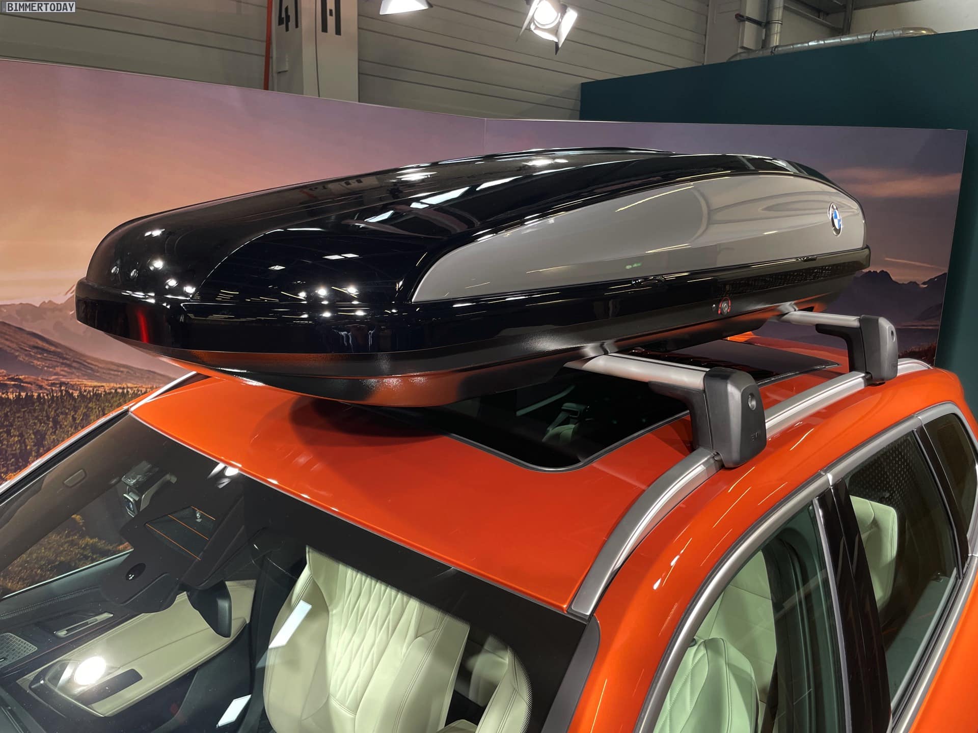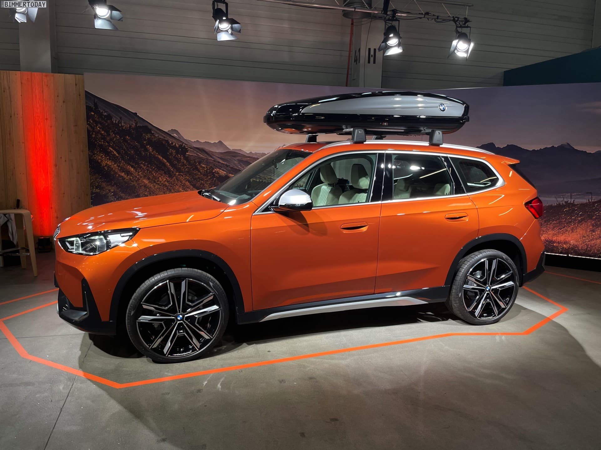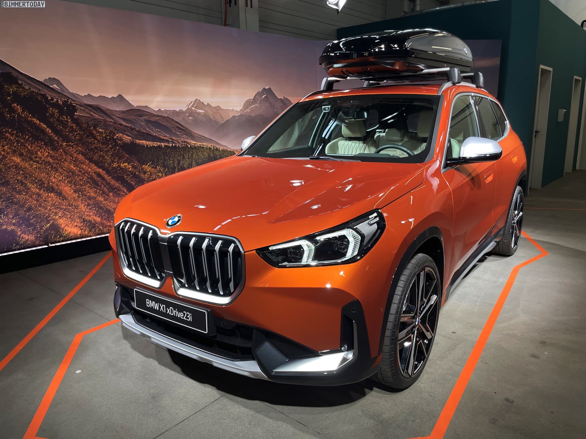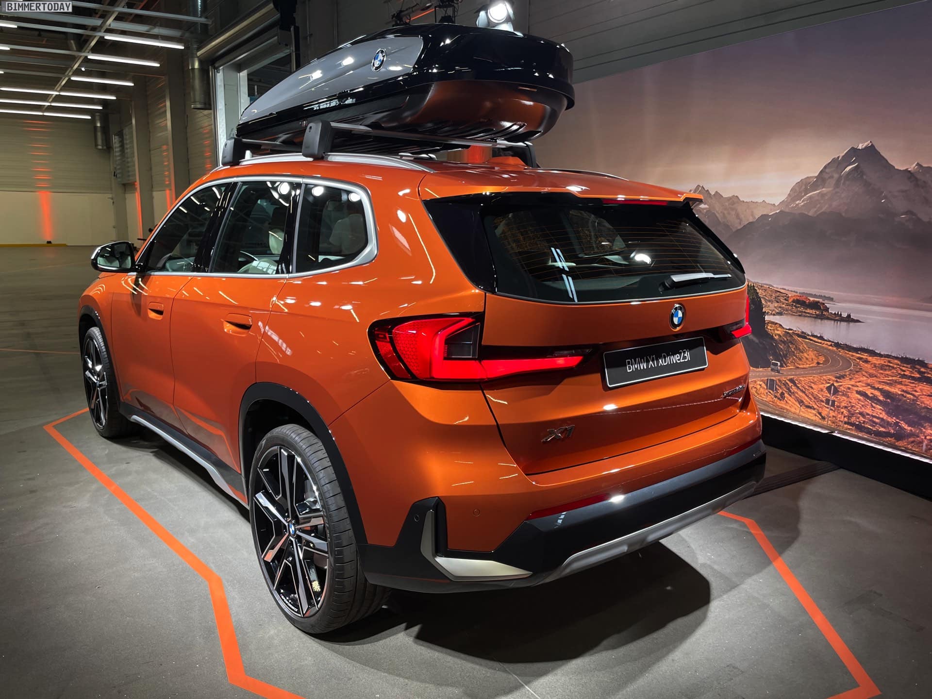 Courtesy of BimmerToday, we bring you some exclusive photos of the 2023 BMW X1 with new accessories. The new X1 is painted in Utah Orange and optioned with the xLine package. Of course, the roof box from the BMW range of accessories is particularly eye-catching. The box will bring additional cargo space to the refreshed X1. Other accessories include 21-inch light alloy wheels double-spoke 877 Bicolor and they come with BMW floating center caps.