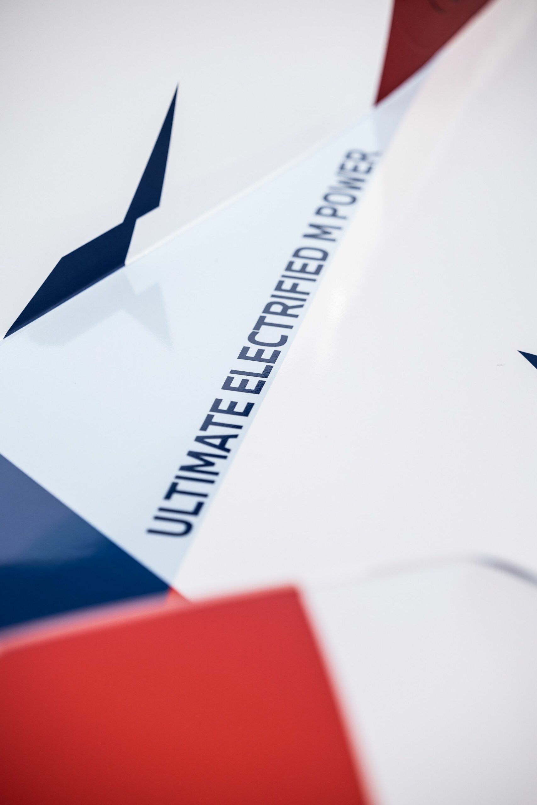 The design also features “Mbedded” references to the BMW logo, and utilizes both blue and purple elements to pronounce the natural colors of electricity. Additionally, the works livery carries a matte black extension ahead of the cockpit beneath the driver’s side of the windscreen.