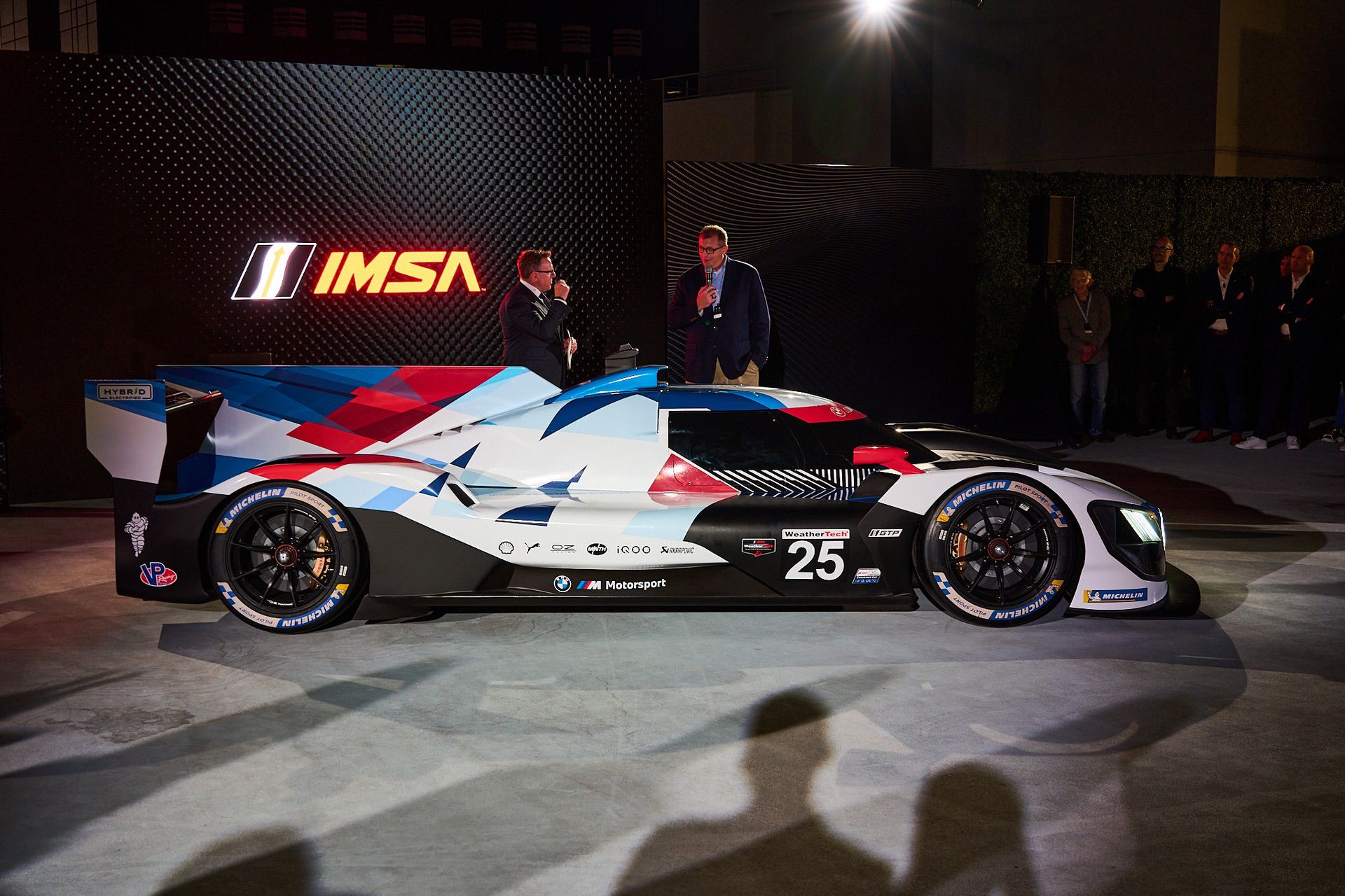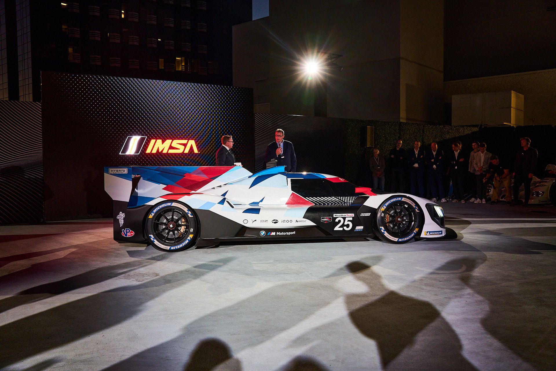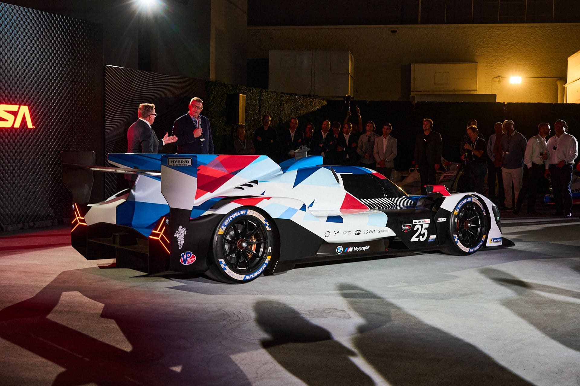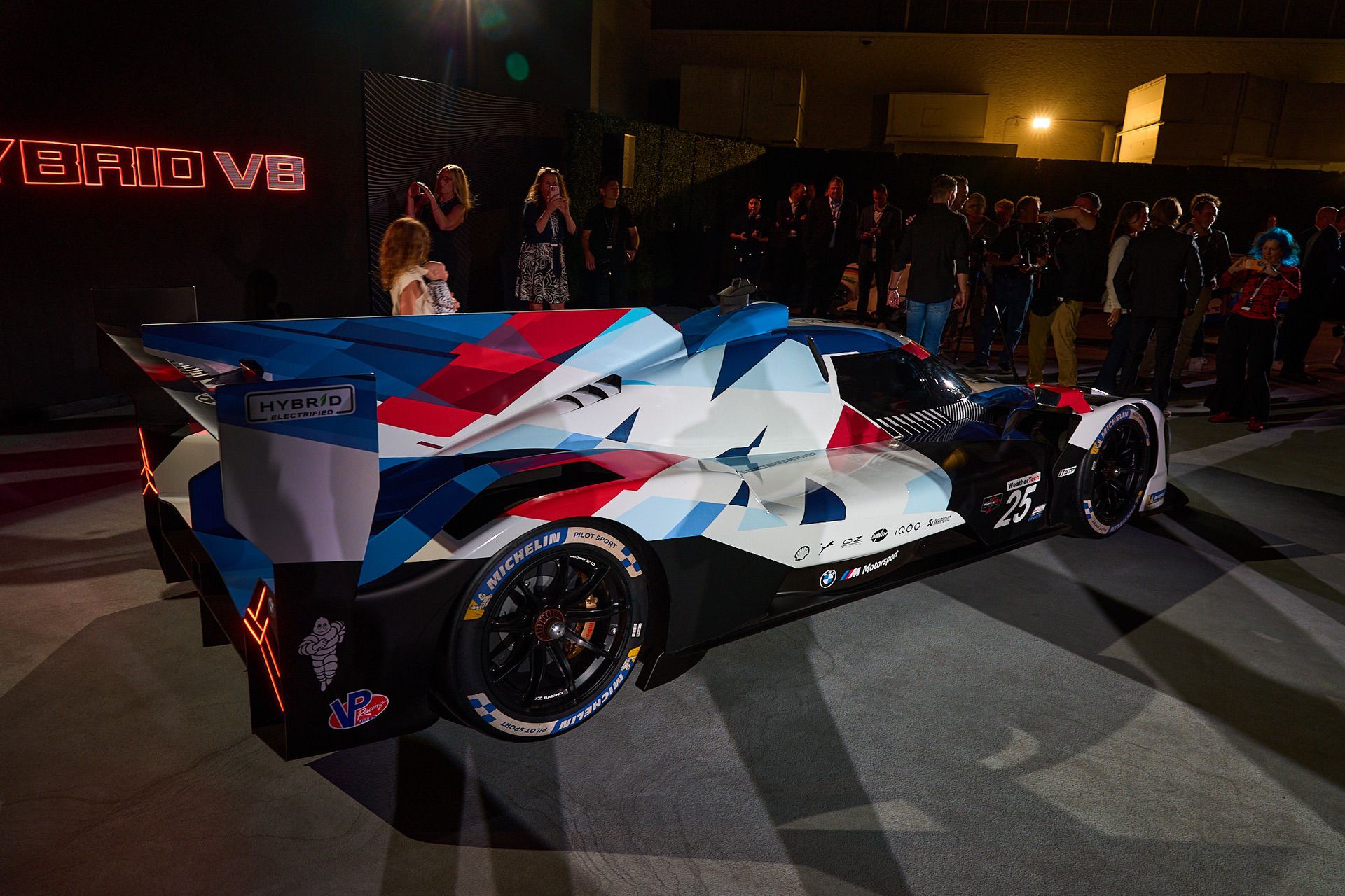 The Petersen Museum in Los Angeles hosted last night the unveil of the BMW M Hybrid V8. The new and exciting racing car was the subject of countless teasers over the last few months, but it was now the time to reveal its last secrets. And one of them was the official racing livery. While the prototypes featured a funky, yet cool camo, this new livery brings even more excitement to the unique design. The M Hybrid V8 racing car was unveiled in front of BMW M CEO Franciscus van Meel, Head of BMW M Motorsport Andreas Roos, IMSA President John Doonan, and the owners of BMW M Team RLL, Bobby Rahal, David Letterman and Patrick Lanigan.