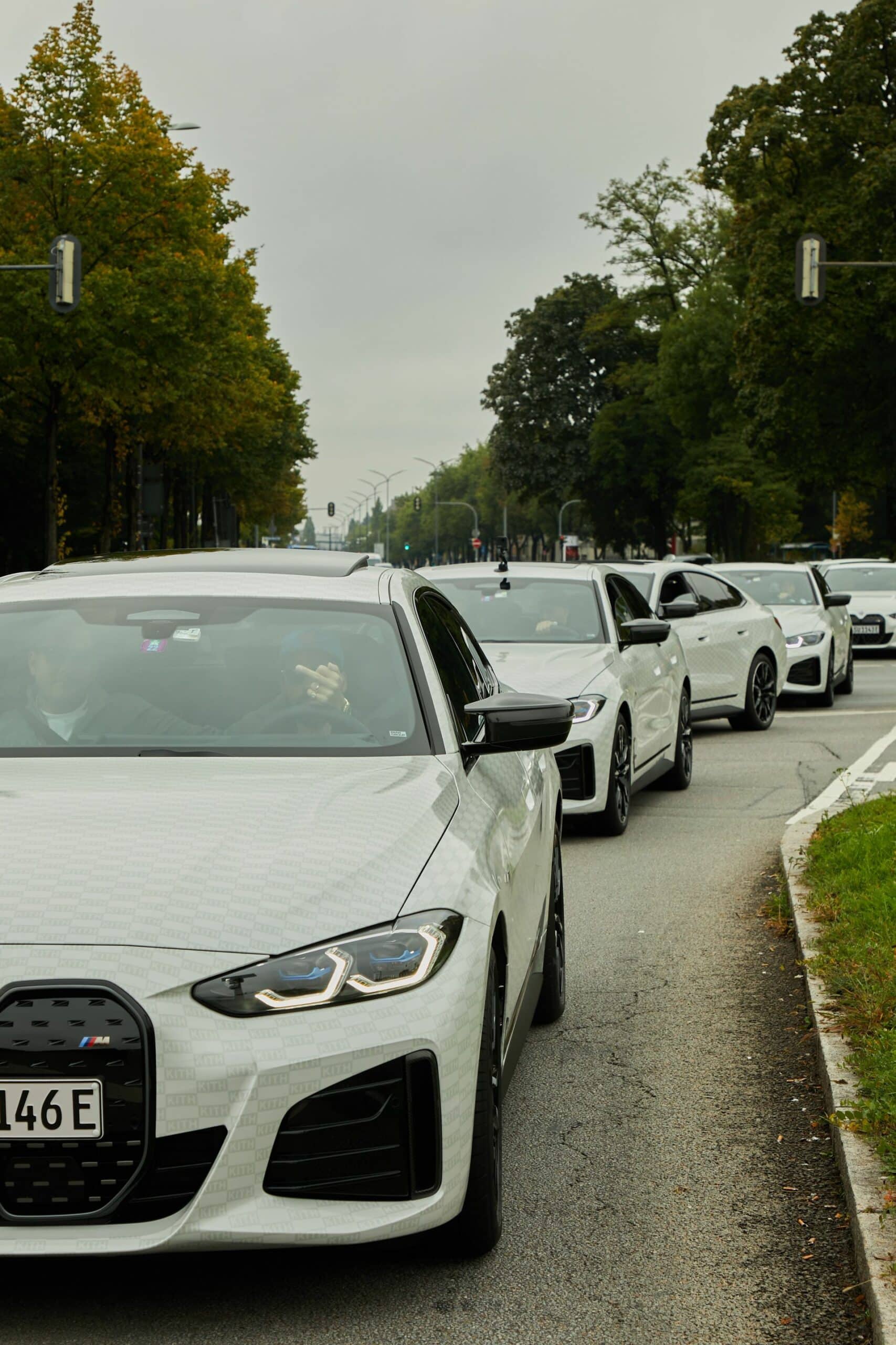 Seeing the one-off 1602 Elektro Vitaly Green and the i4 M50 fleet is like a bridge through time, from the original EV to the latest zero-emissions offerings. To strengthen the connection between past and present, an electric Gran Coupe was painted to match his ancestor. With 2022 representing the year BMW celebrates 50 years of M, the eight white cars received the anniversary roundel carrying the three famous colors.