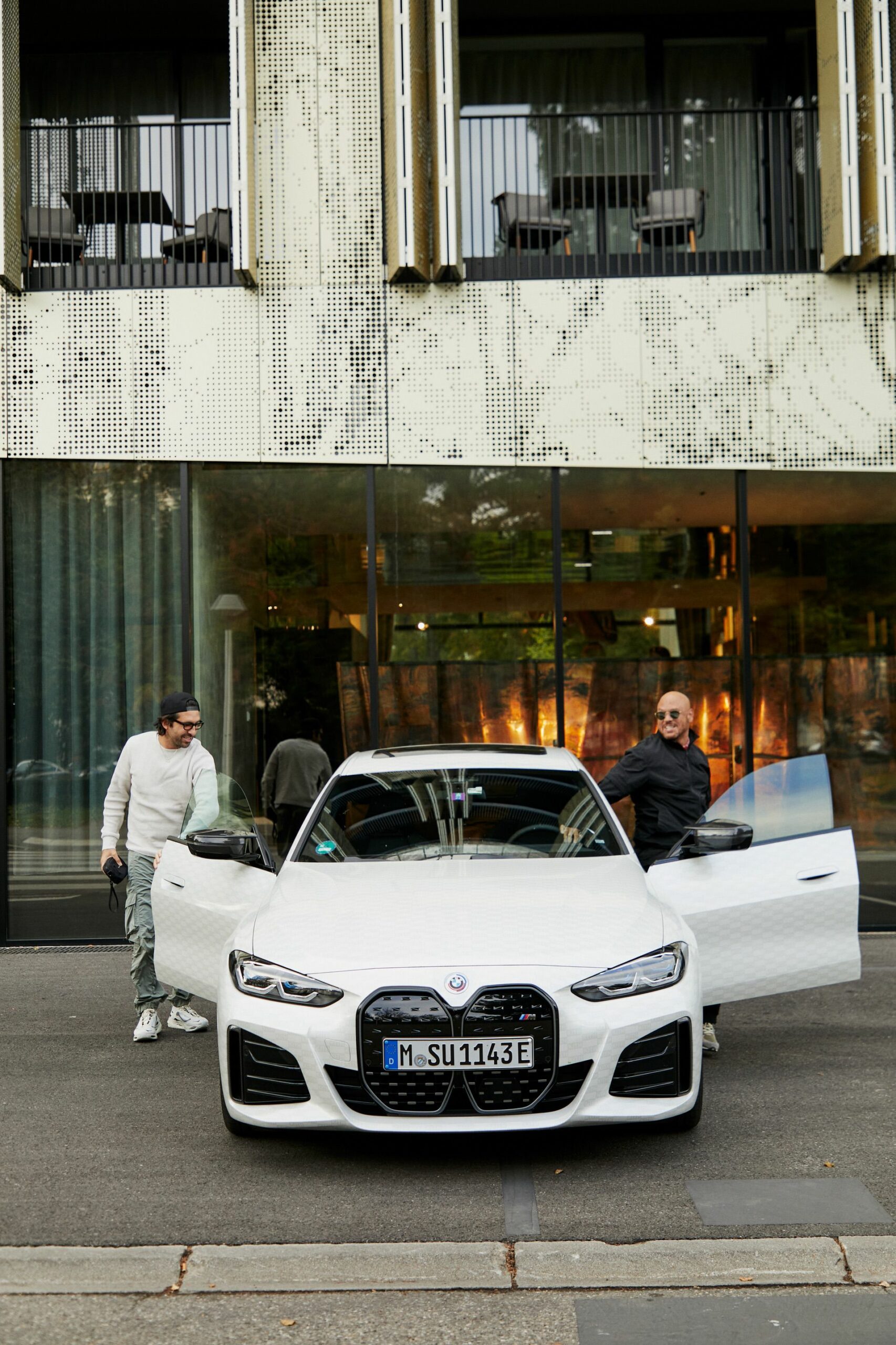 The new project does away with combustion engines since it’s based on the i4 M50. It’s not your typical product launch since KITH organized an extended trip through several countries with 16 close friends and members of the family, among them Super Bowl winner, Victor Cruz. They had the opportunity to ride inside the first M Performance electric car, featuring a white body adorned with a bespoke KITH monogram pattern. The starting point was at BMW Classic to see some of Bavaria’s greatest hits before heading to BMW Welt to take delivery of no fewer than eight cars.
