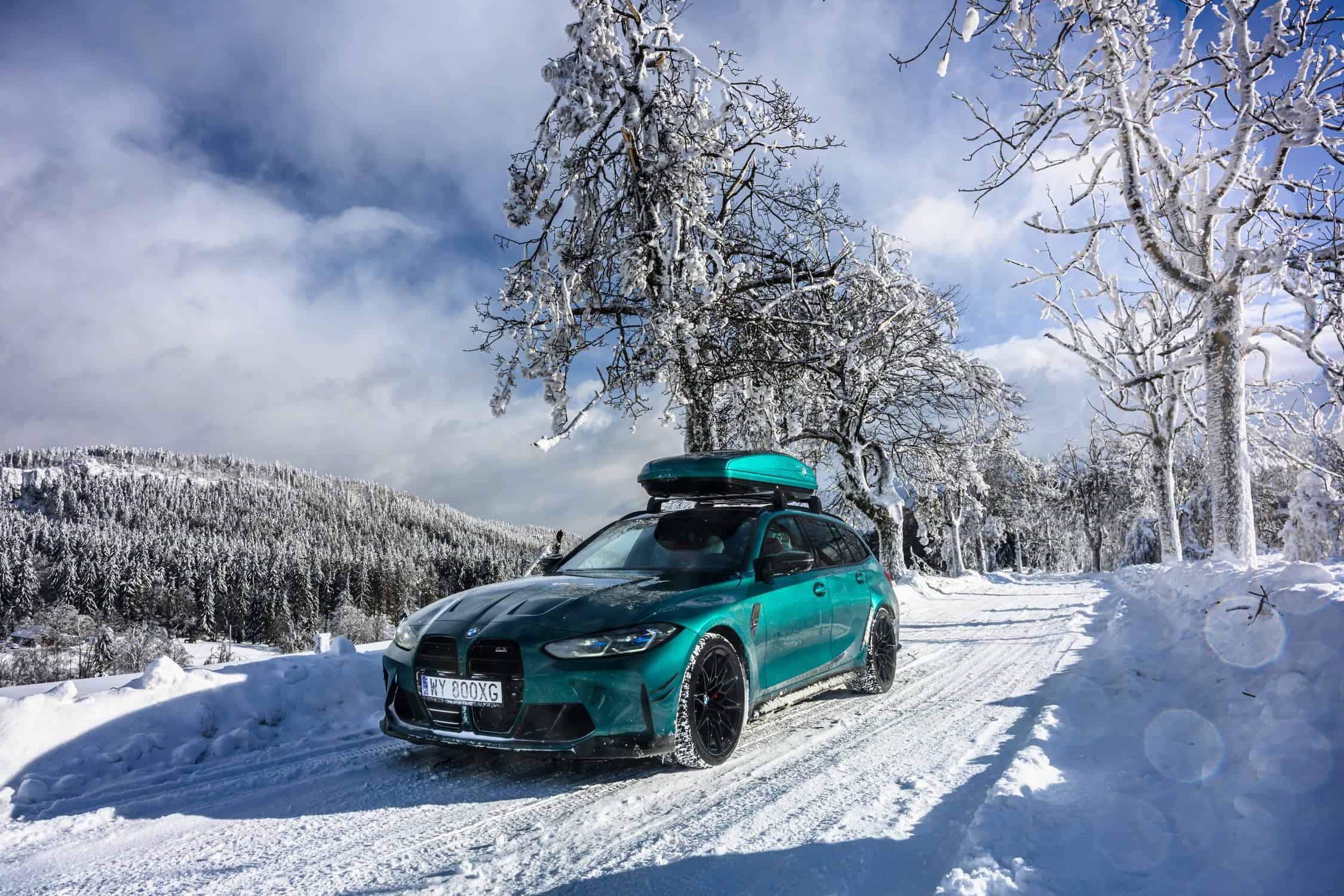 √BMW M3 Touring With Matching Roof Box Poses In A Winter Wonderland