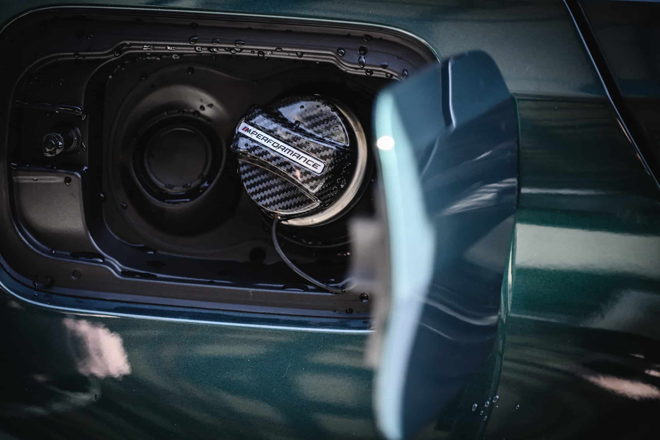 It also happens to have an assortment of M Performance Parts in carbon fiber, including front canards that frankly look out of place on a wagon. As a refresher, there is no carbon fiber roof option for the M3 Touring as BMW decided against retooling the factory for what it believes will be a low-volume product. Speaking of the lightweight material, there’s even carbon fiber for the fuel filler cap, which proudly features M Performance branding.