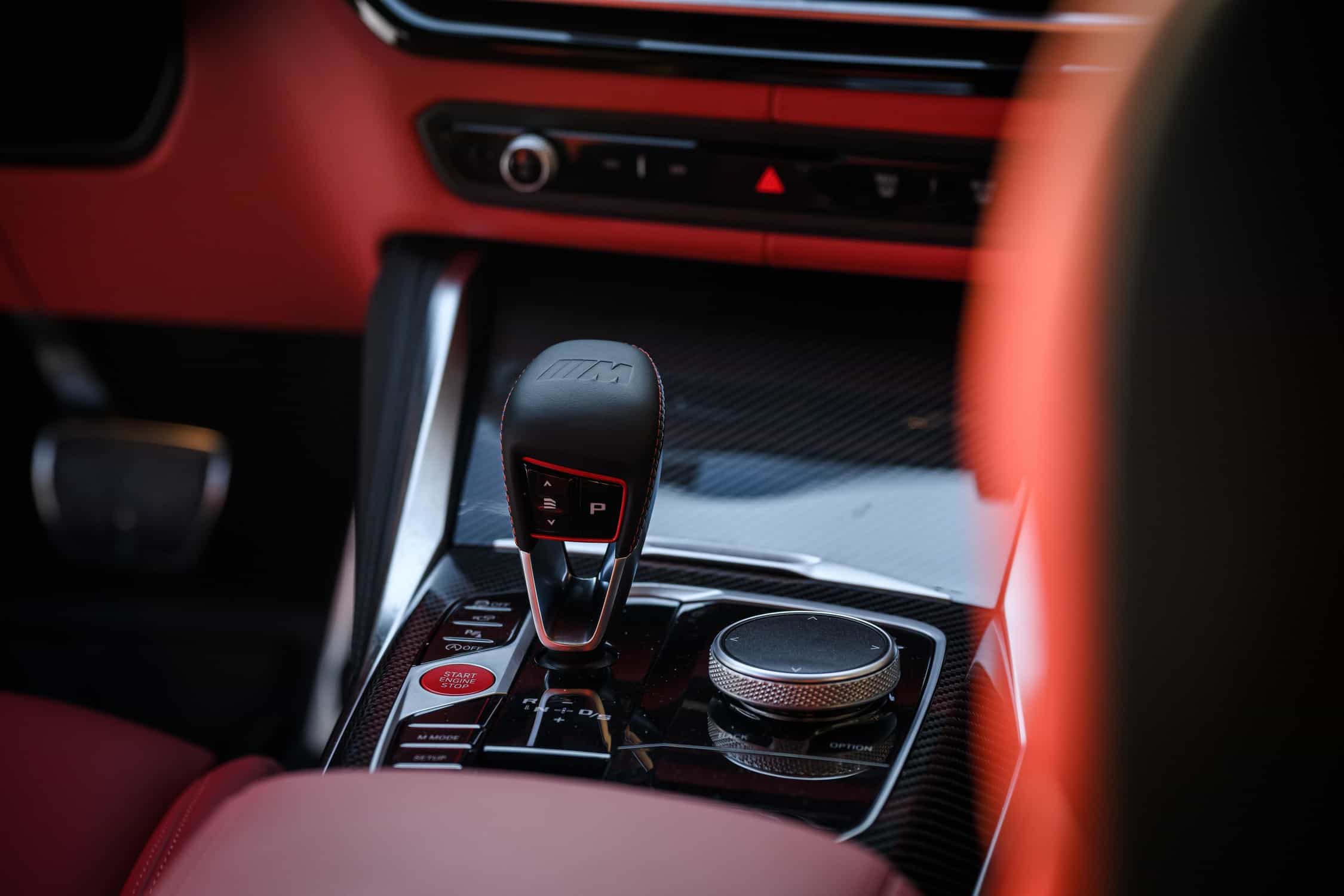There are only two photos depicting the interior, finished in striking Fiona Red leather with loads of carbon fiber on the steering wheel and dashboard. You won’t find an M3 Touring with a six-speed manual since the super wagon comes exclusively as a Competition model with xDrive. This setup echoes the AMG C63 Estate and Audi RS4 Avant as the other two high-performance German family cars also have two pedals and four-wheel drive.