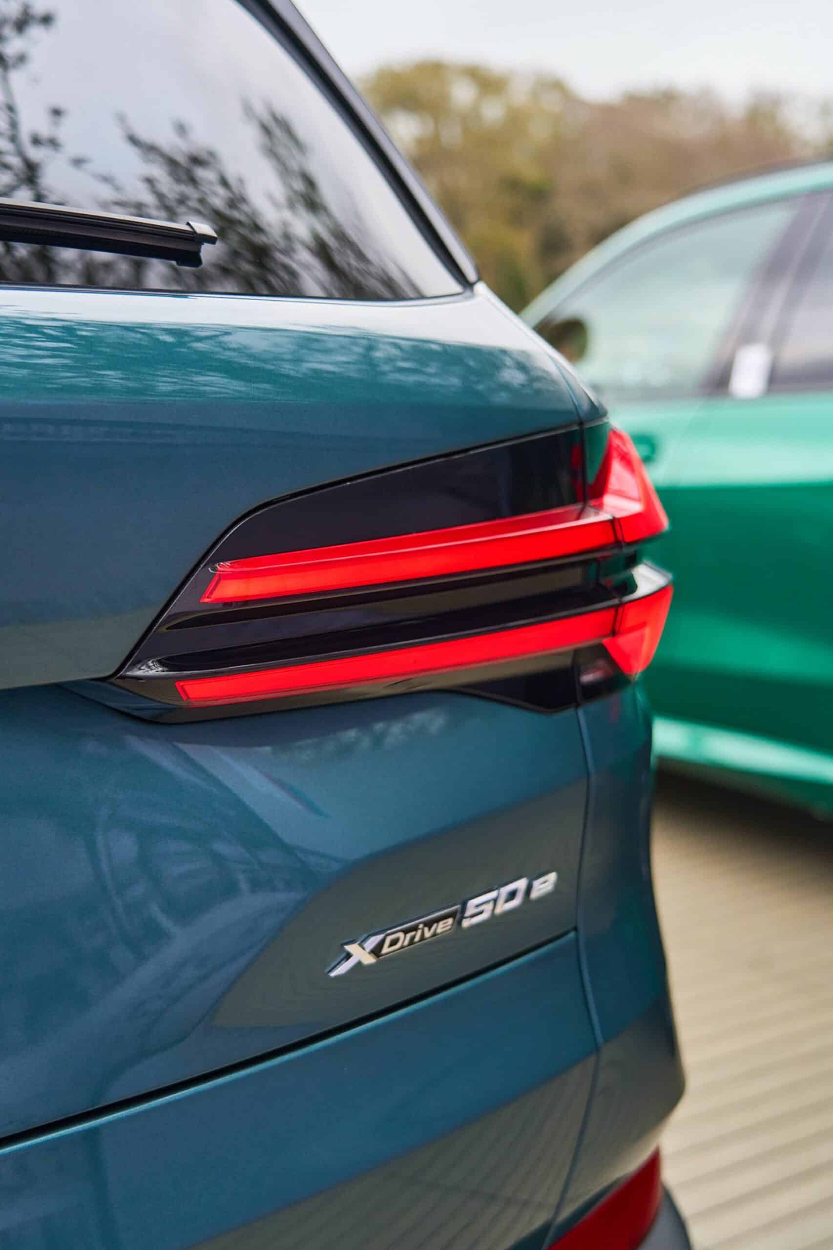 As with the X6 LCI, its conventionally shaped sibling has slimmer matrix LED headlights with arrow-shaped daytime running lights. Being the PHEV model, the cap covering the charging port is on the left-front fender where you’ll also notice an “electrified by i” badge denoting it’s the electrified model. At the rear, BMW has updated the taillights to give them an “X” motif, representing the only major change at the back of the luxobarge.