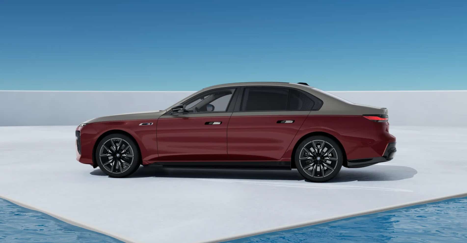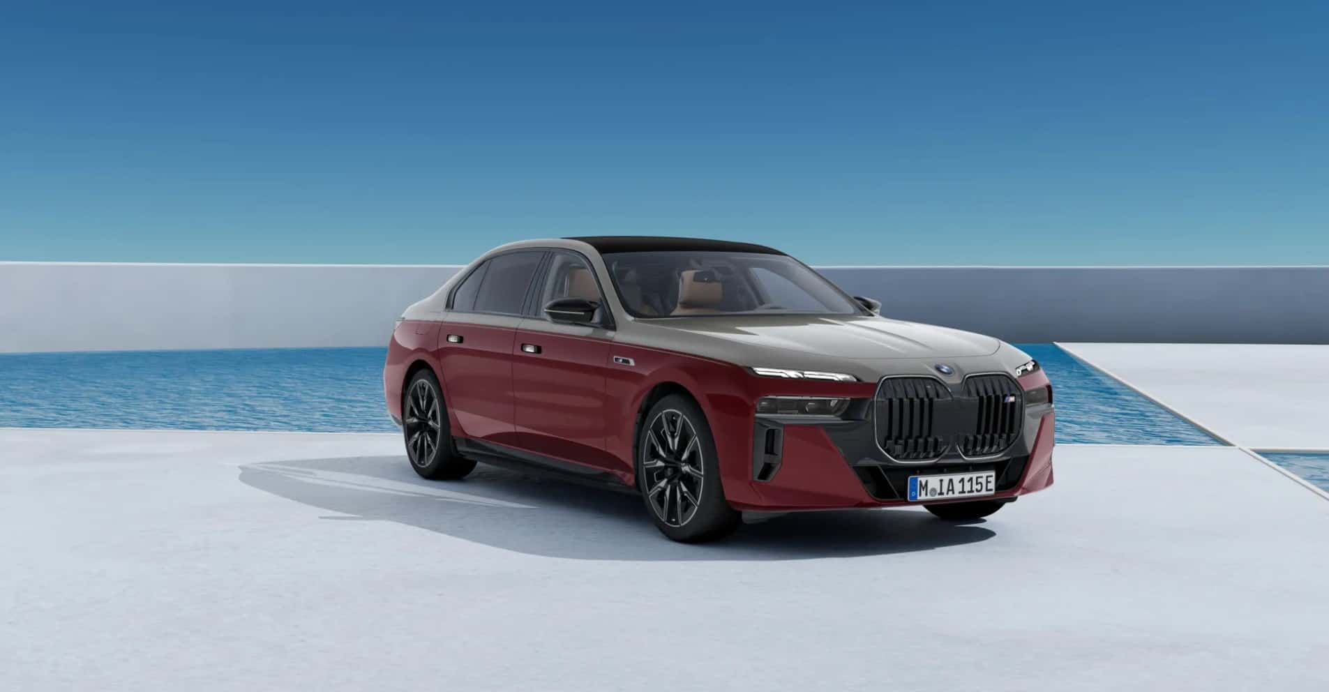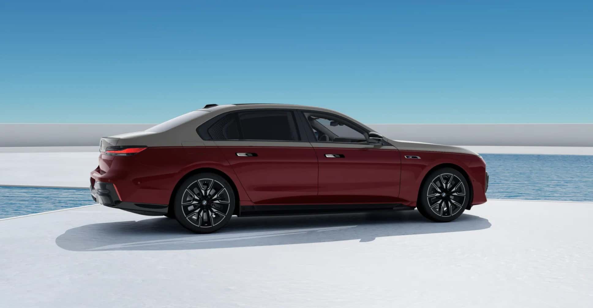 Shown here in screenshots taken from the German market configurator is the i7 M70 with just about all the bells and whistles. The two-tone paint alone costs €12,000 and it combines Aventurine Red for the lower section of the body with Oxid Grey for the upper section. It’s the most expensive option available, followed by the €9,950 Individual interior with Merino leather and carbon fiber.