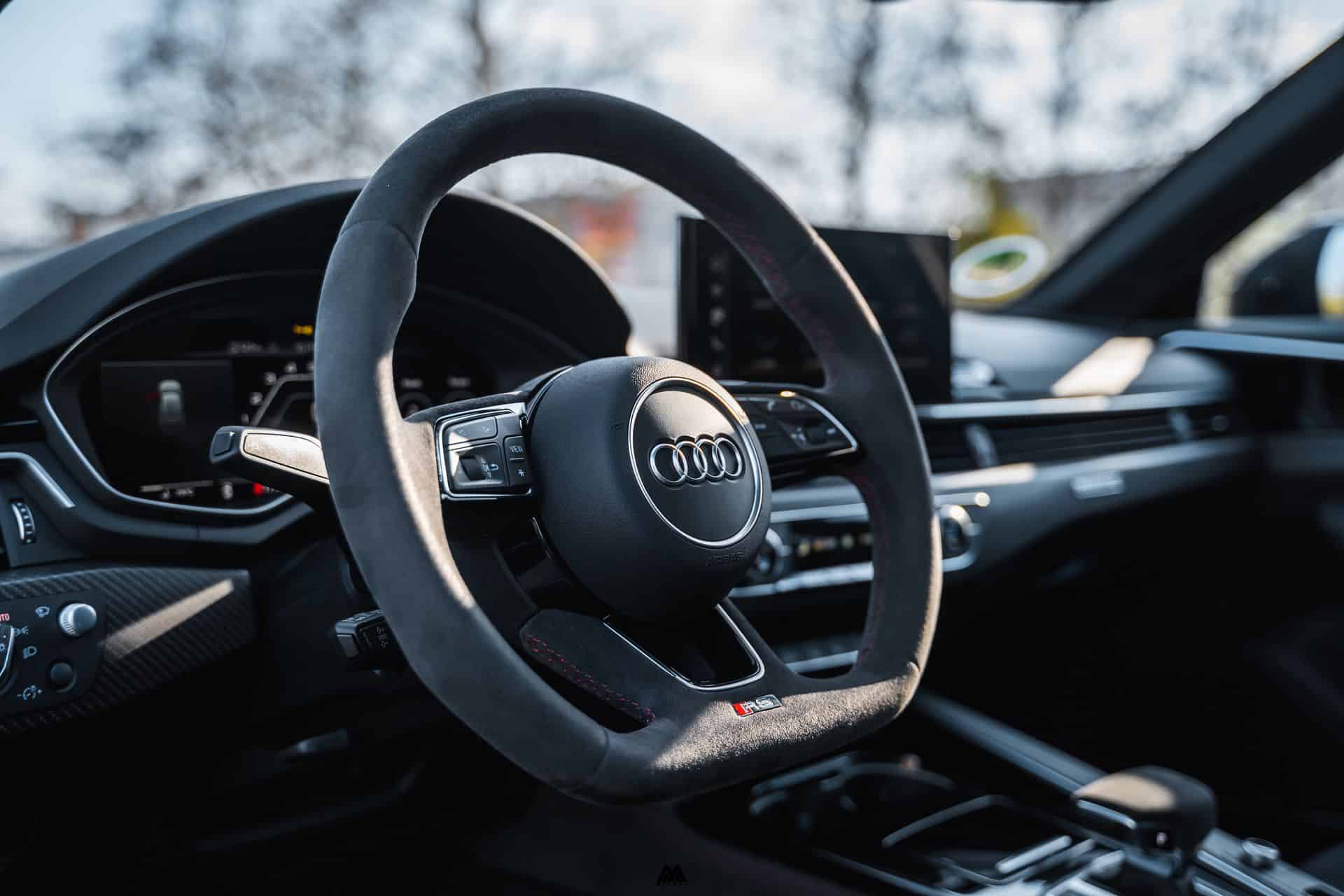 Let’s start with the software. The engine now revs to 5,000 rpm instead of 3,800 rpm at standstill. The onboard engine control unit was recoded for a faster throttle response, the gearbox mapping revitalized for quicker, shorter shifts, and a quicker 1:13.1 steering was installed as well. It is one of the quickest fitted to a modern production car. I hope you now start to understand where we are heading here. The engineers in Ingolstadt took a magnifying glass and tuned the RS4 to perfection, allowing the car to accelerate from 0-60 mph in just 3.8 seconds, which is 0.2 seconds faster than its ‘normal’ brother.