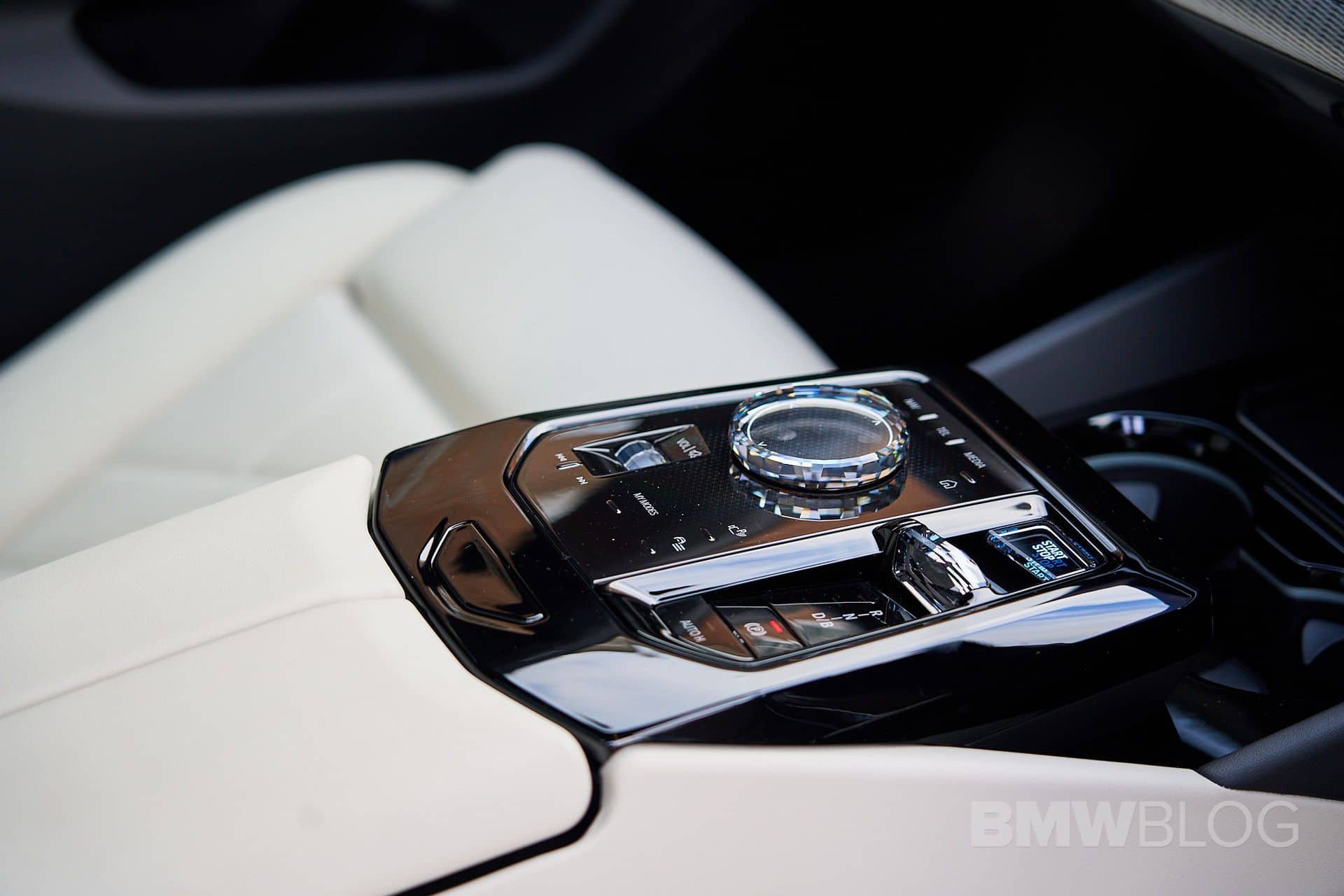The car at Goodwood showcased an Aluminum Rhombicle trim on the dashboard, along with a decent amount of glossy black accents, and a flat-bottomed steering wheel. Much like the i7 M70 displayed at the same event, the i5 is among the first BMWs to get the iDrive 8.5 infotainment with the QuickSelect functionality that the X1 is also getting for its iDrive 9 setup.