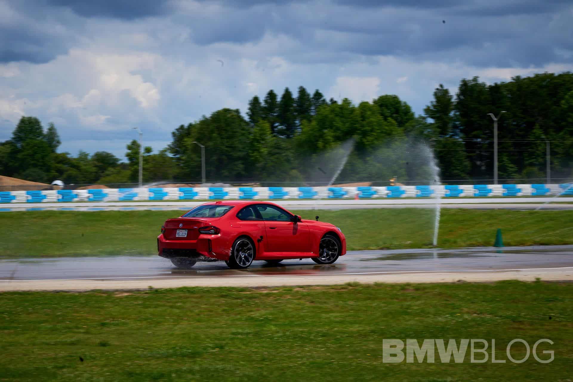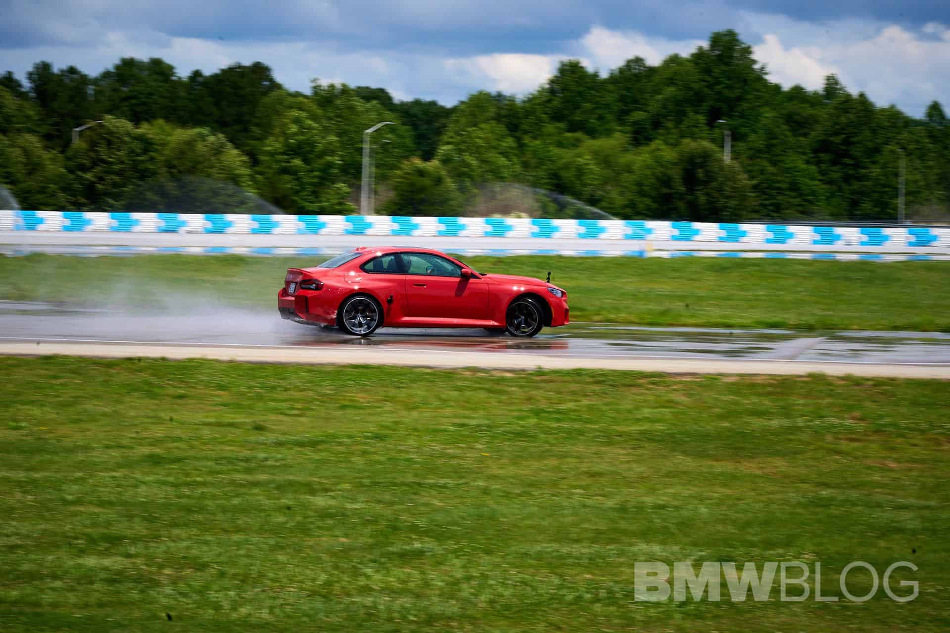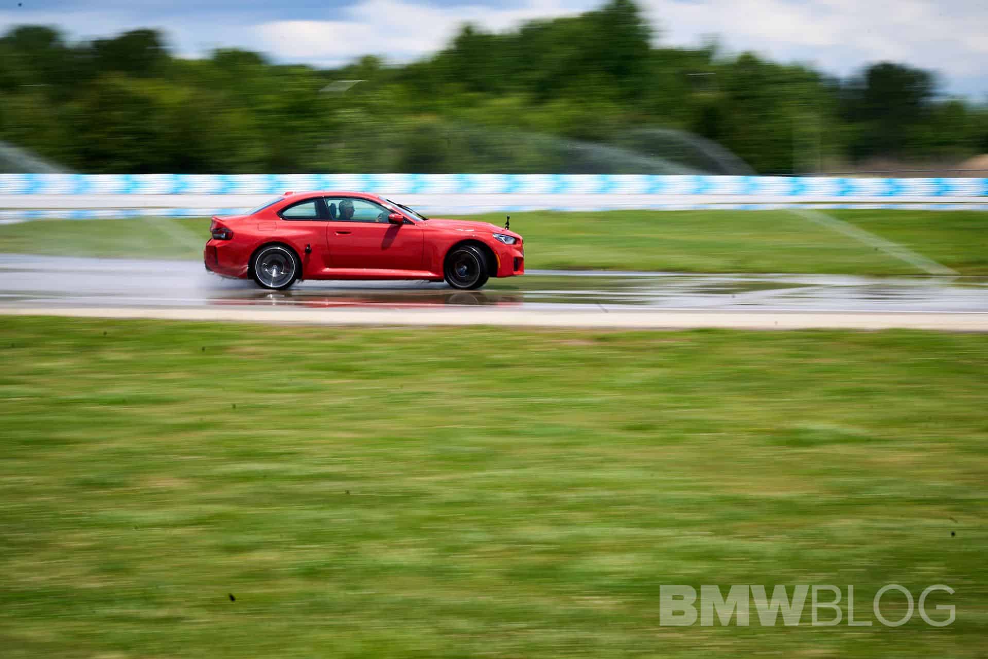 Navigating the intricacies of a wet skidpad demands precision and finesse, and Renner makes it look too easy. As water sprays and tires meet the slick surface, Renner’s controlled maneuvers highlight the M2’s responsive handling and its ability to maintain composure even under slippery conditions. Of course, the driver’s skillset plays an important role here. It’s worth noting that this marks Renner’s first encounter with the new M2.
