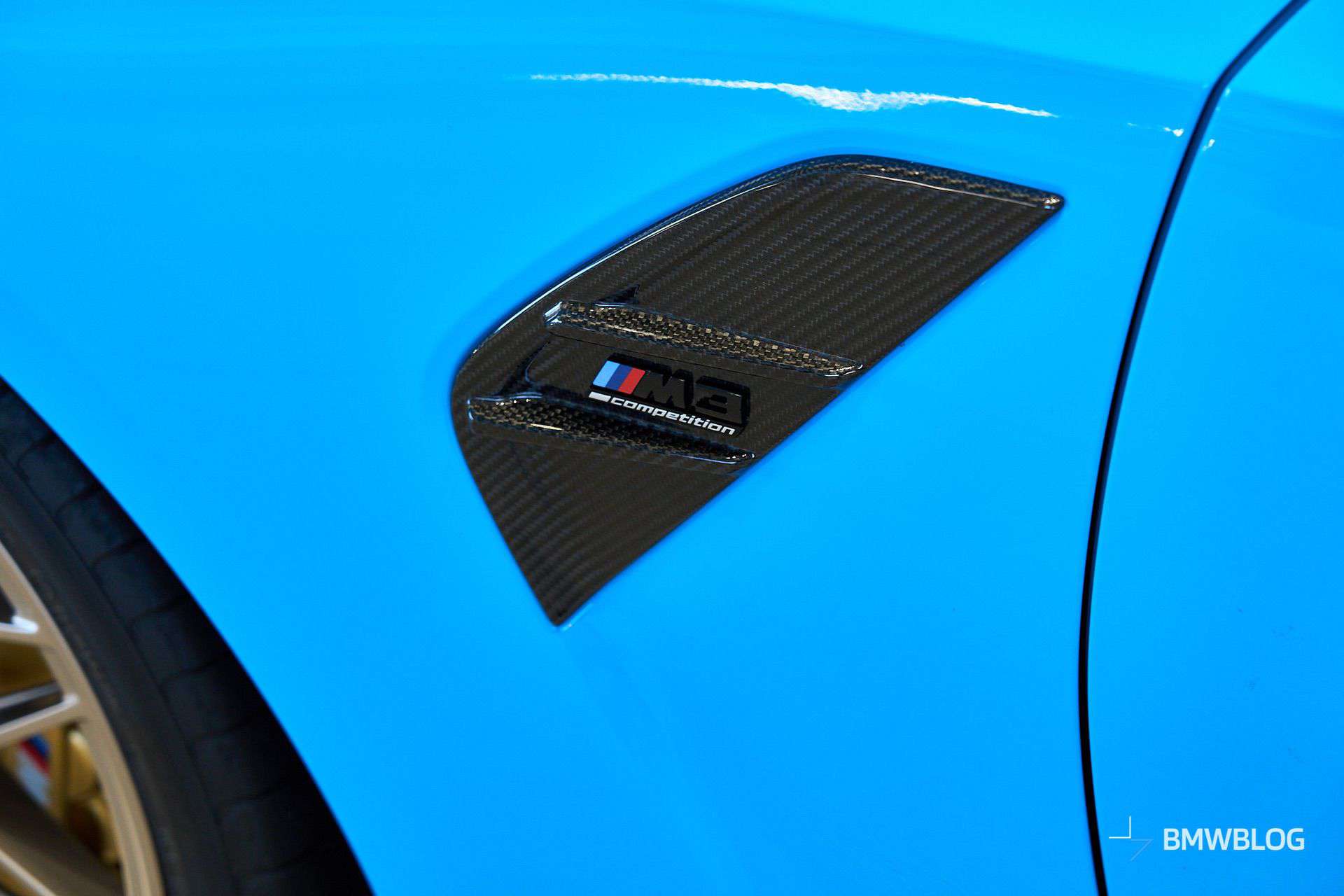 BMW spared no expense as it configured this long-roof M3 with everything from front canards and carbon-ceramic brakes to a red tow strap and a windshield decal that looks straight from the 1980s. Eagle-eyed readers will notice the anniversary roundel introduced in 2022 when the M division celebrated its 50th anniversary. It was an optional item on all M Performance and M cars but also on lesser models that had the M Sport Package.